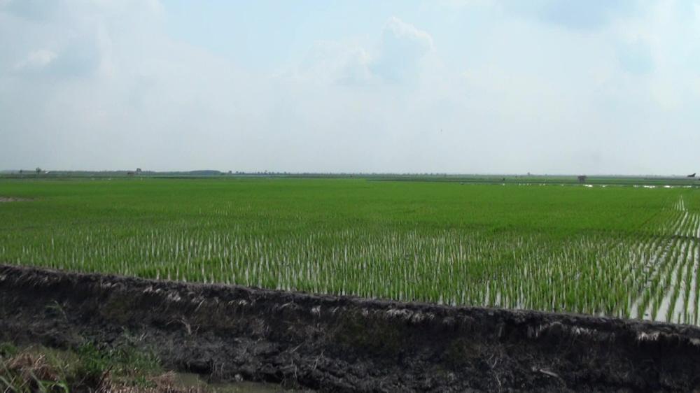 | 広い水田が広がり、サトウキビと思われる作物も植えられていた。家に帰り昼食をする。 |