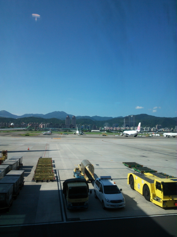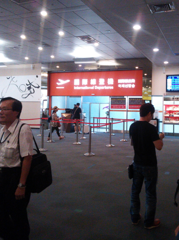 | 遼寧街には看板がひしめいていた。「小張龜鳥」「水菓専賣店」「安記港式海鮮」「Tiger/來來熱炒/基隆漁港現撈海鮮100元」「保火仔飯」「來來鶏肉海鮮」「金牌口卑酒/一便瓶50」「泰楽城男女養生會館/タイ式マツサージBODY MASSAGE/預約電話」「泰式按摩/Thai Massage イ式マツサージ」「五金行」「平價消費」「振火韋人力仲介/毎月只15840元・家中不缺工」「名峯火考飯」「牛家村30年老店」「八方雲集/鍋貼・水餃専賣店」「又一村手工水餃・麺食」「新北市八方雲集公益路足包賣/11/16愛在山海之間61快速道路開足包」等の看板を見て歩く。気になる表面が丸みのあり、屋上に緑地の見えるビル(大潤發)が印象的だった。 空港に行くと、搭乗口ではなく「国際線登機」の表示になっていた。お土産店を回り中に入る。 |