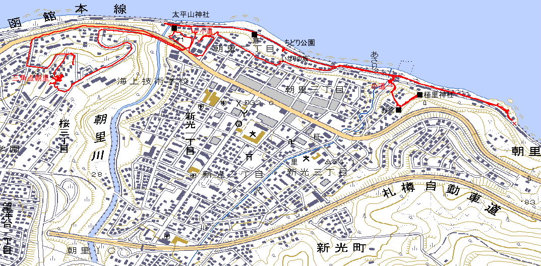 | 朝里駅 | 柾里神社 | 赤岩山を | 阿蘇岩山を |