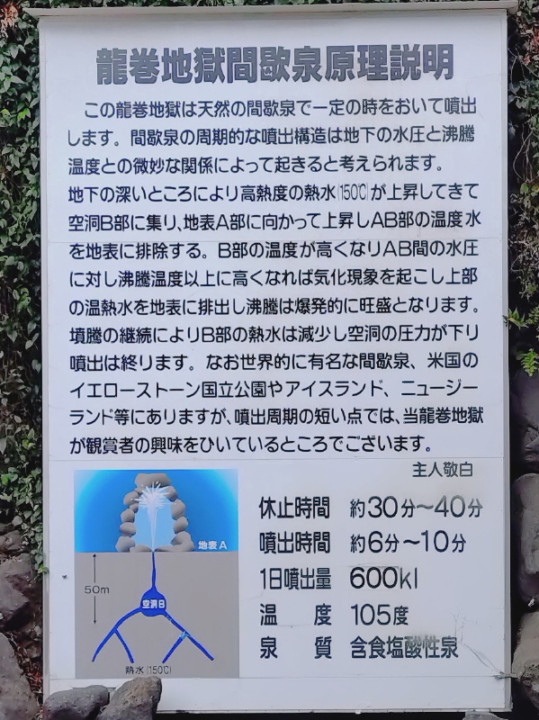 | 龍巻地獄は間欠泉なので、出るまで気長に待つことになる。 |