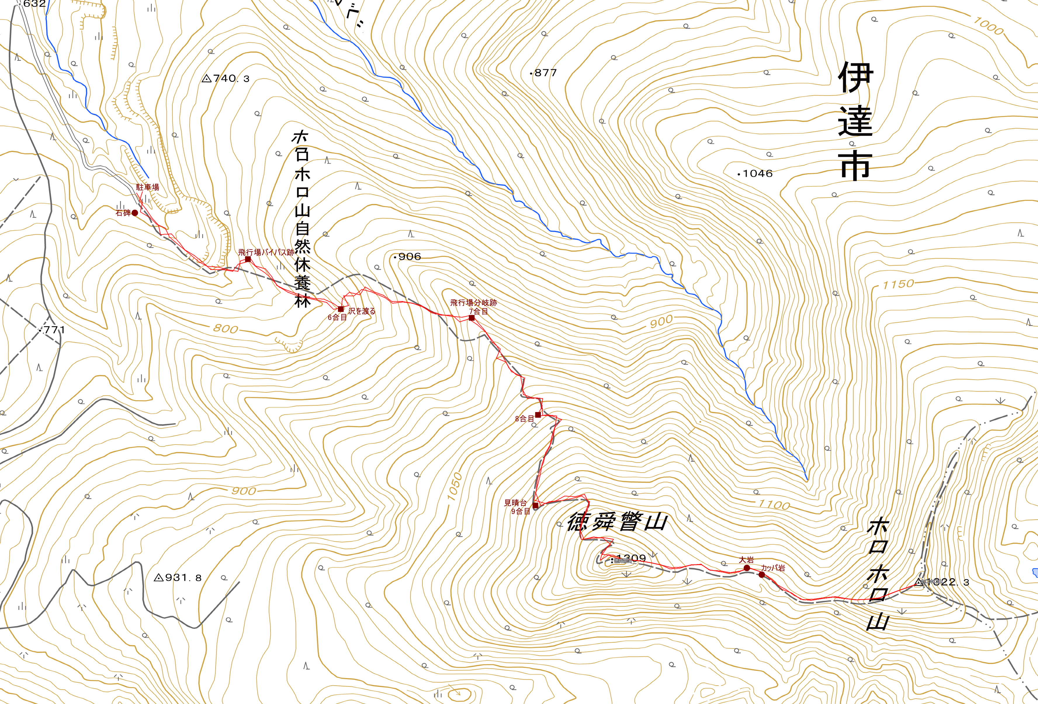 ポイント ホロホロ山と徳瞬瞥山のどちらを頂上にするかは、好き好きだと思うが、徳瞬別山から登る方が登山道や駐車場が確りしている。 |