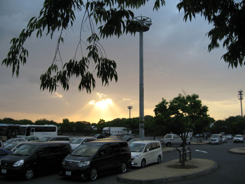 | 帰り道に道を間違えて、迷路のような小路を辿ることになるが、この小路は時代劇にでてくるセットのような屋敷が続き、タイムスリップしたような気持ちなにる。夕日は天使の梯子を伴っていた。 |