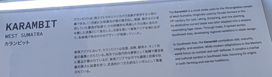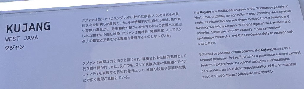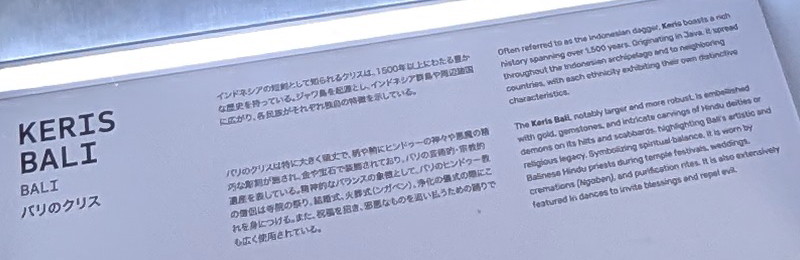 | バリのクリス:短剣、バディック:短剣、クジャン:農具から武器に、カランビット:小型の鎌も展示されていた。 |