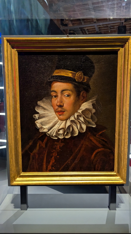 | 天井には飛行機の木製の骨組みがつるされていた。次のフロアは「SANTA SEDE HOLY SEE 聖座」になり、カラヴァッジョの「キリストの埋葬」)が展示されていた。 |