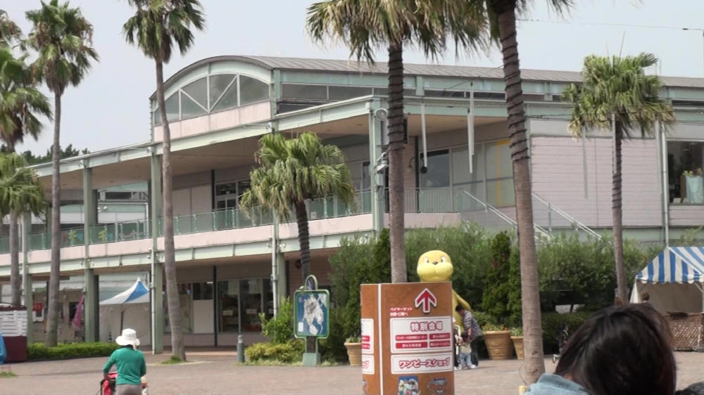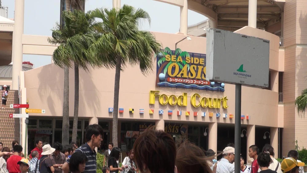 | センターハウスのフードコートで食事して、ドルフィンファンタジーのを見ながららカマボコ屋根のショッピングモールに寄ってみる。 |