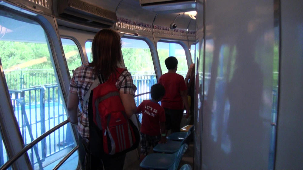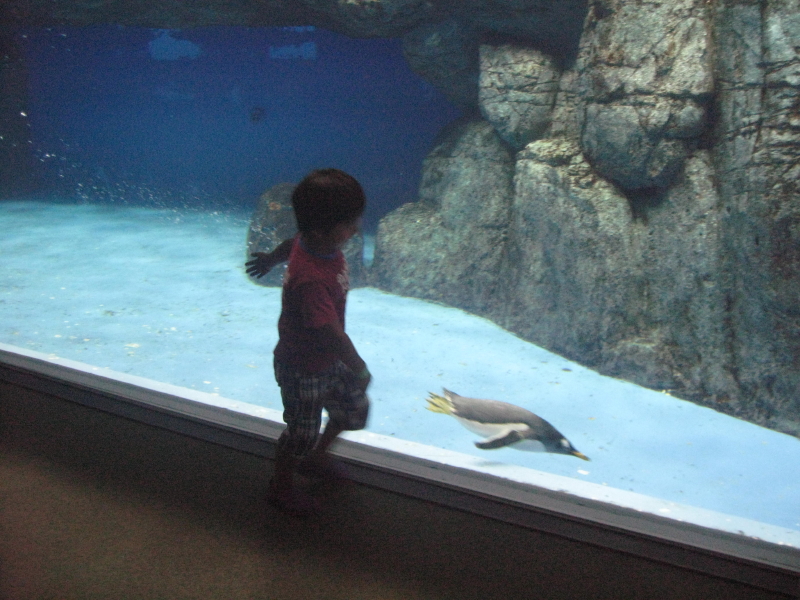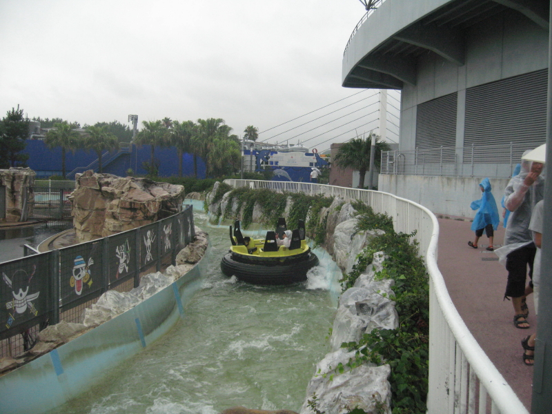 | アクアライドのラフティングボートに乗って水路を流れる。アクアスタジアムに行ってペンギンを眺める。 |
