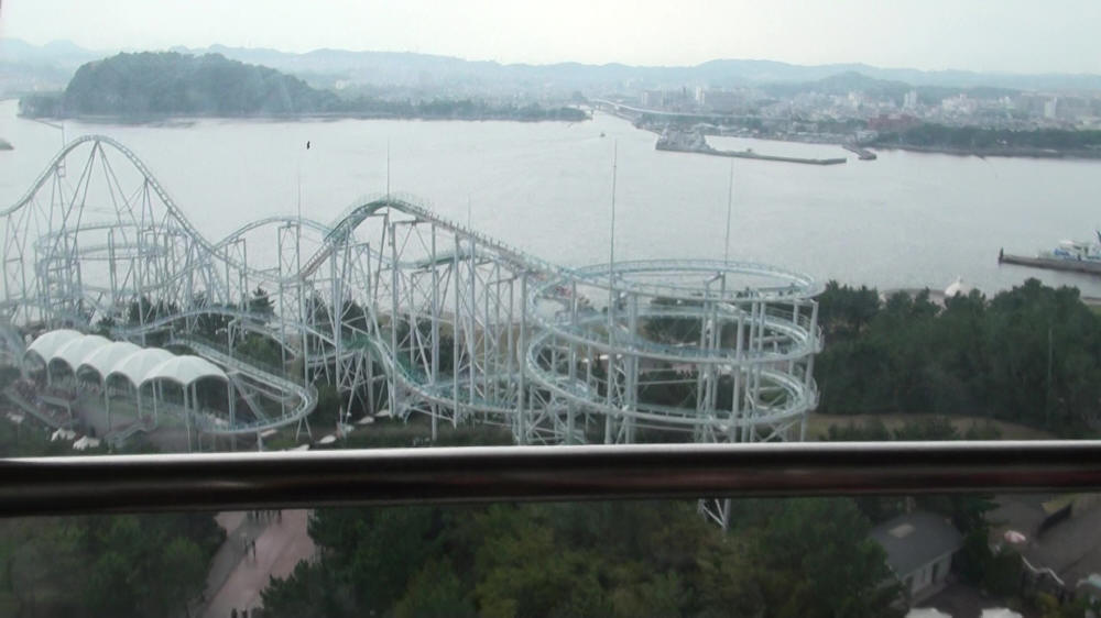 | シーパラダイスタワーに上がると、ジェットコースター、アクアミュージアム、スプラッシュート(SPLASHUTE)の施設が見下ろせる。 |