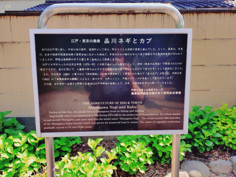| 解説板「江戸・東京の農業 品川ネギとカブ」 |