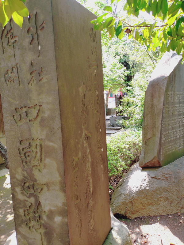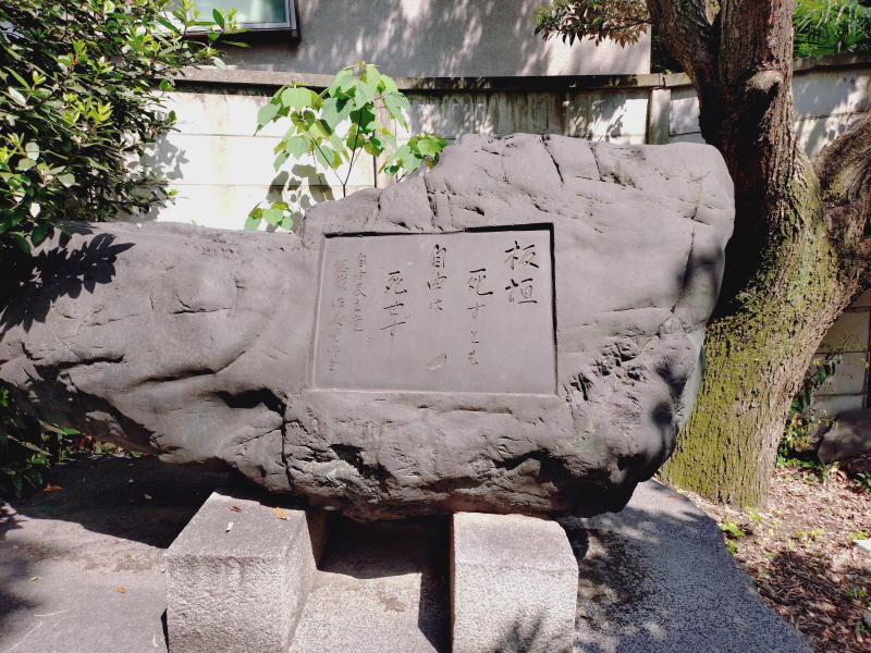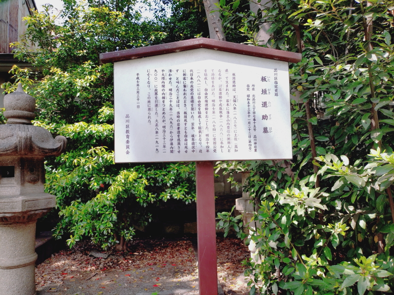拝殿の裏手に広場があり、板垣退助氏と絹子夫人の墓が並んでいる。解説板や有名な自由は死せず碑のある。しながわ百景13にもなっているようだ。 |