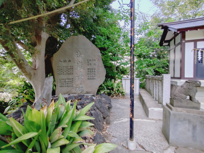 | ボルトで固定された | 社号碑 | 井戸 | 御嶽神社 |