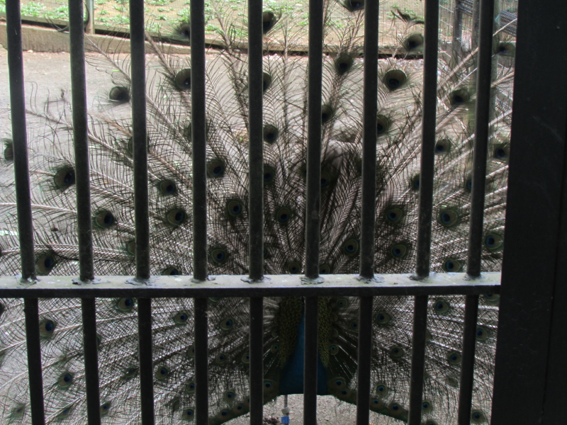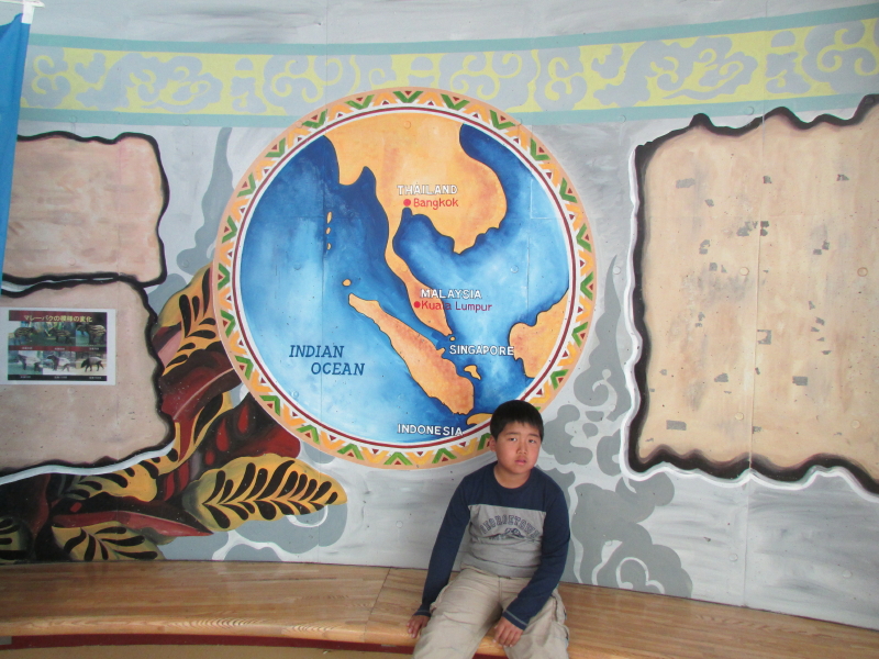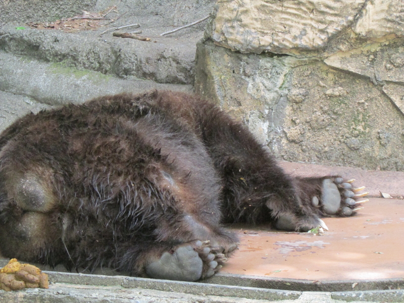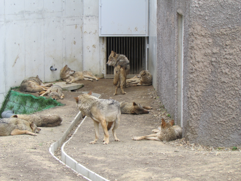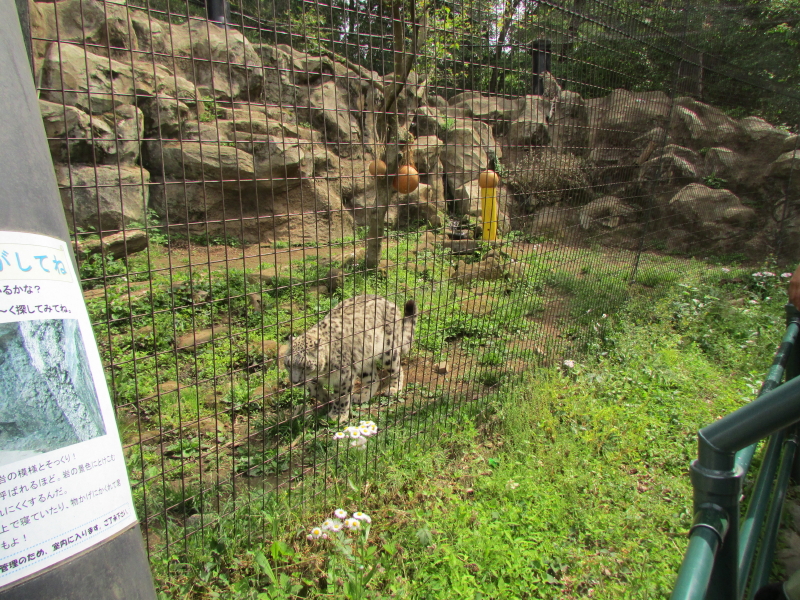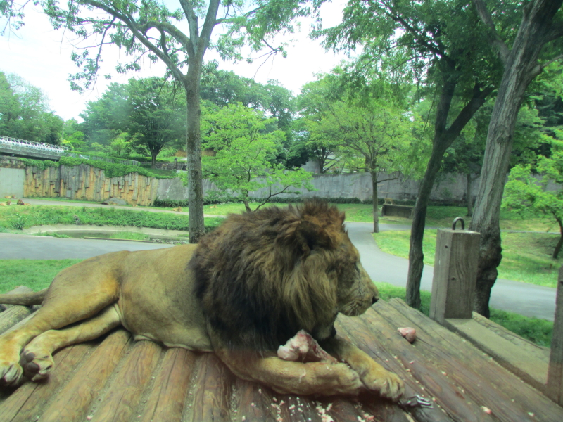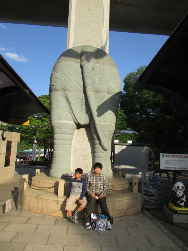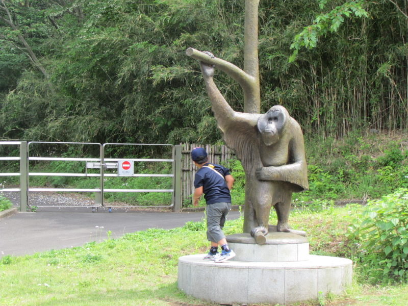 広場の奥に、変わった形の石碑があり、近づいて見ると上に紋のようなライオンの顔が描かれ、その下に「どうぶつさん/おもいでを/ありがとう」と刻まれていた。 碑には玉も添えられていた。 |