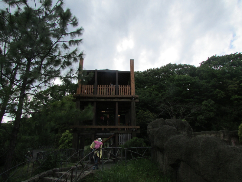 | 動物公園の最高地点にあるコアラ広場には展望台があり、高尾側が見える。あいにく、曇っていて展望は、展望案内板のように霞んでいた。広場の真ん中には三角点:南平170.9mが鎮座していた。 |