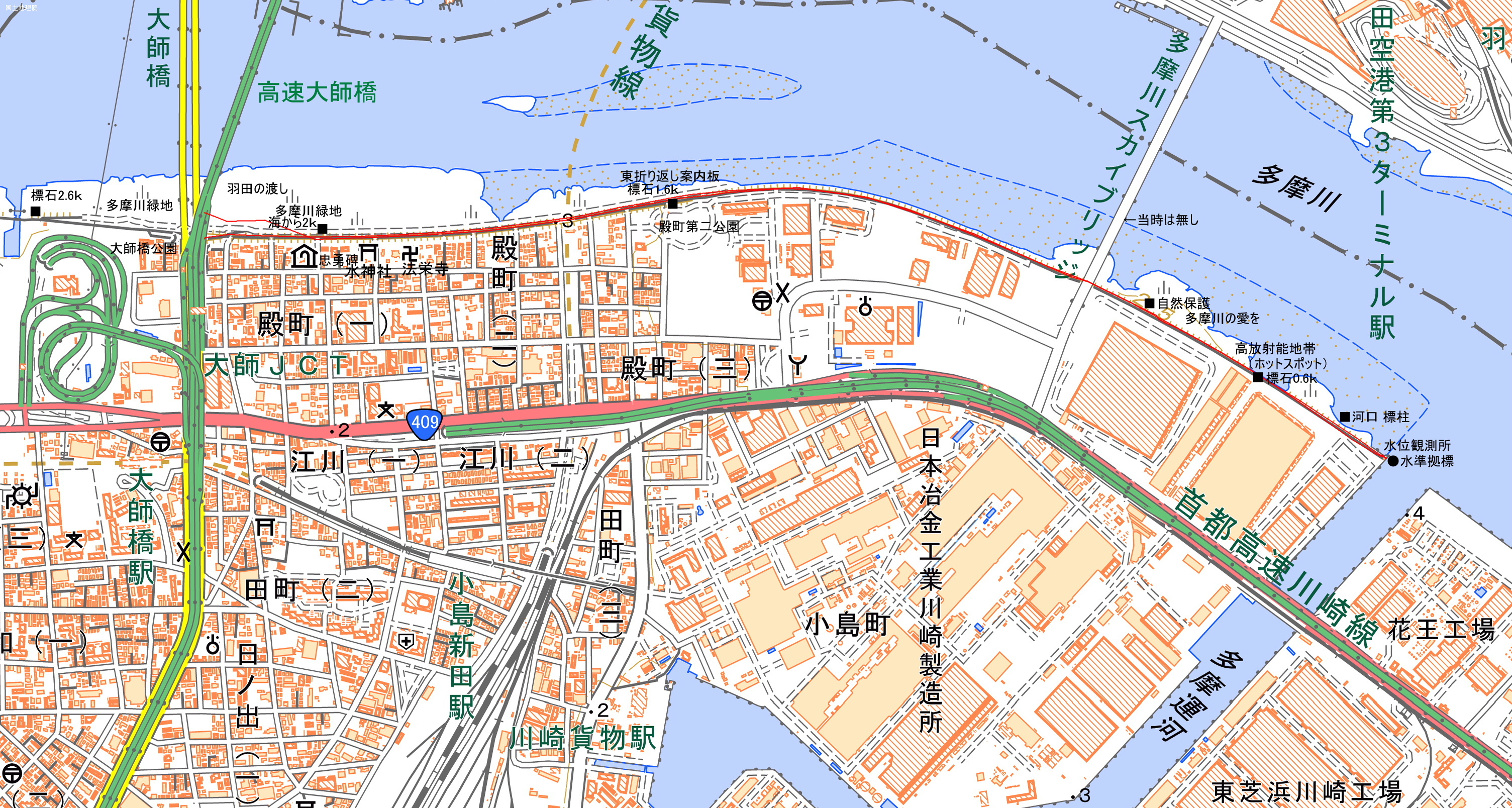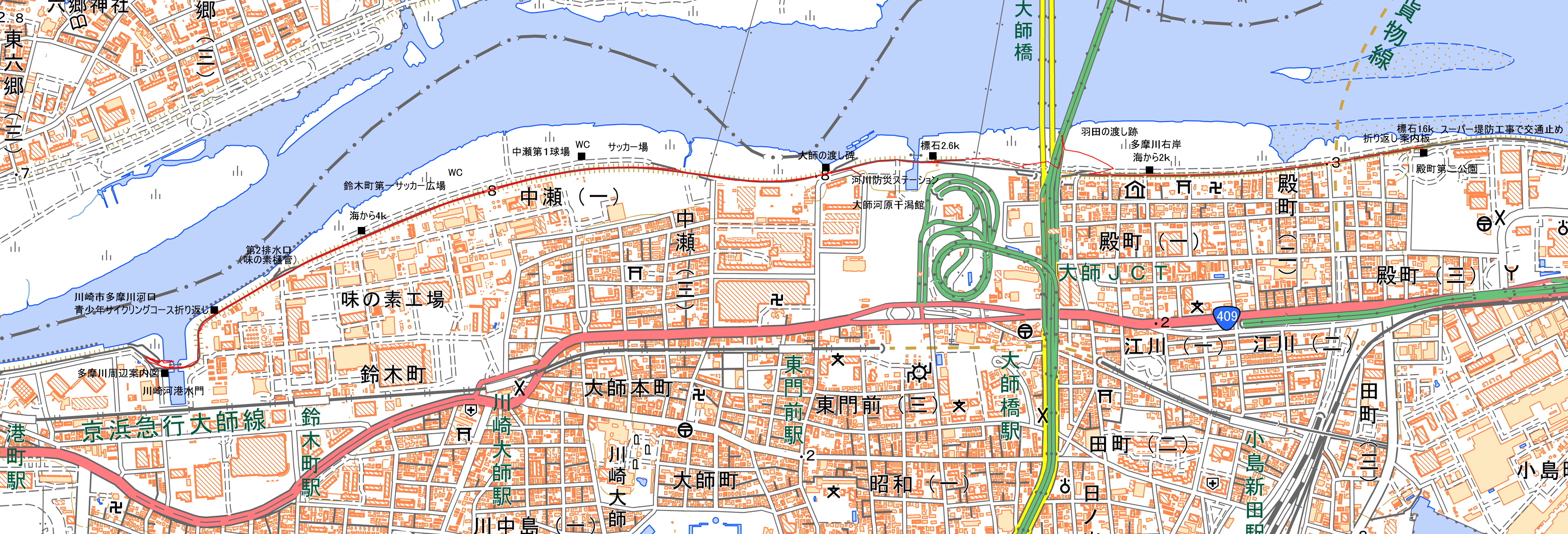 | 海から2km地点 | 羽田の渡し | 水門 | 大師の渡し |