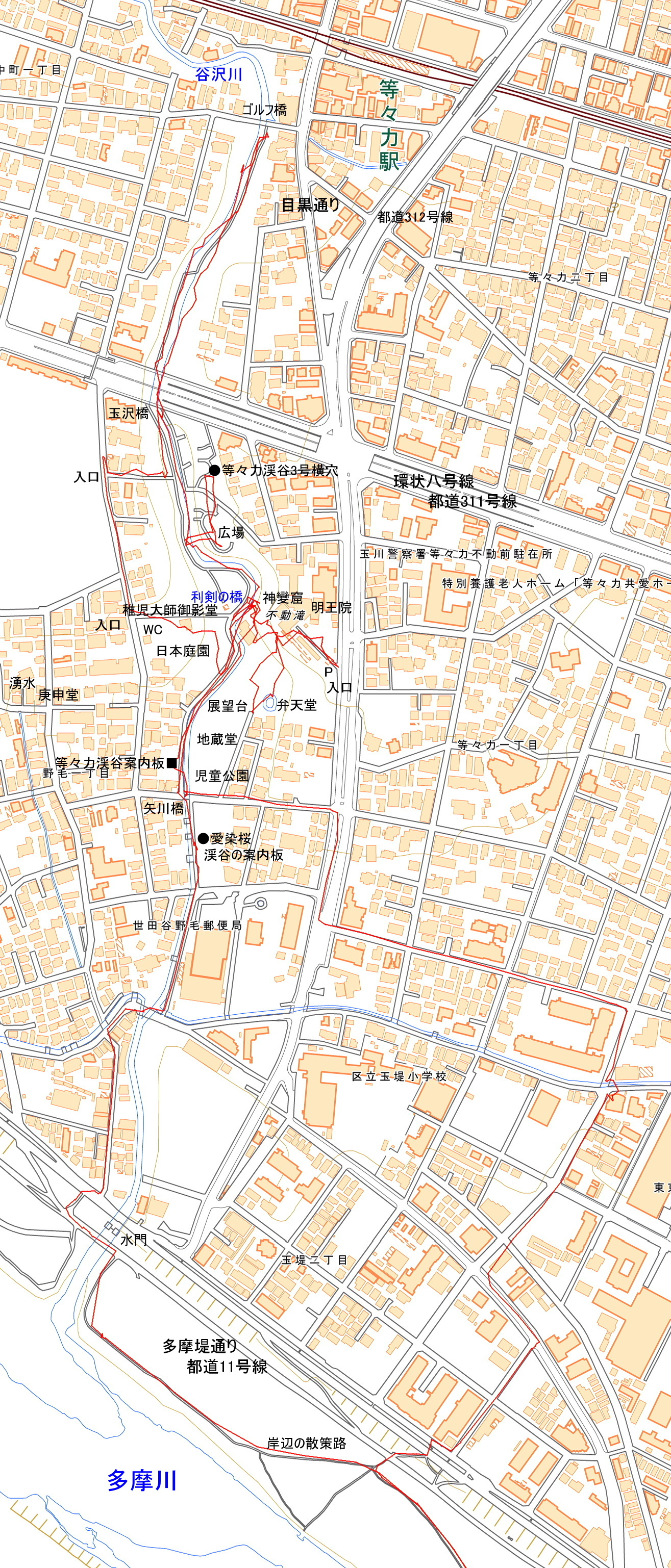 アクセス 東京都道・神奈川県道6号東京大師横浜線(産業道路)を辿り、多摩川に架かる大師橋の袂から多摩川左岸堤防沿いのサイクリングロードで、上流を目指す。東京都唯一の渓谷 国土地理院地図 Google マップ 登山道地図クリック大→| |