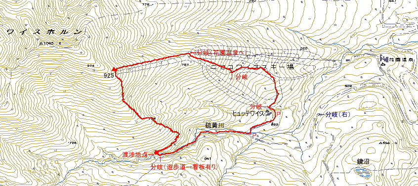 | コース別 | 花園温泉 | スキー場跡 | スキー場跡→硫黄川 | 硫黄川→スキー場跡 |