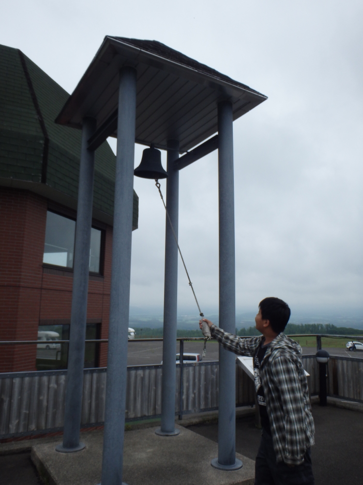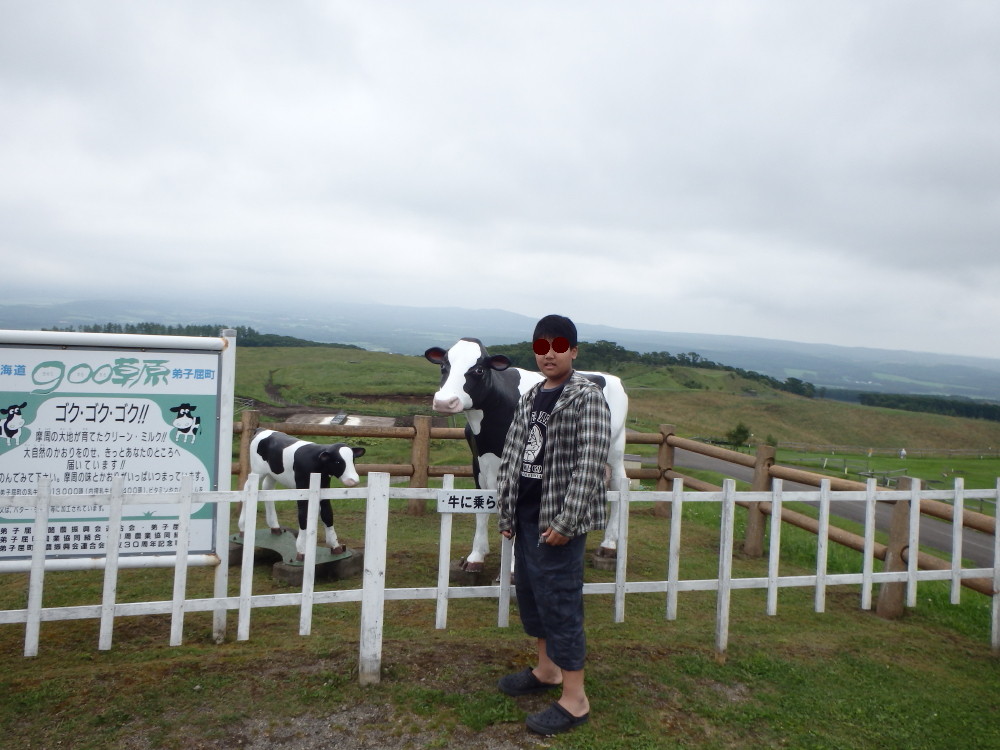 展望台に上がると、360度草原が広がっていた。展望台の鐘を鳴らしたり、顔出しパネルや牛のオブジェと記念写真を写す。 唯一見えて山は美羅尾山だった。 展望台にある鳥瞰図を見ると、晴れていれば、広範囲に見えるようだった。 |