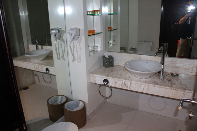 | 夕方Bintan Lagoon Resort(ビンタン・ラグーン・リゾート)に着いて、プールに直行する。ウォータースライダーでプールに入る。日本時間では18時30分だが西インドネシア時間では2時間遅れているので、まだ明るく青空が広がっていた。 |