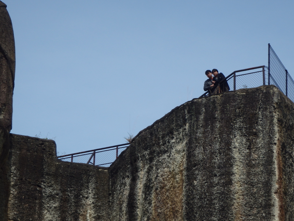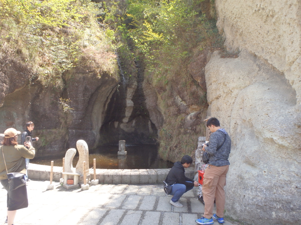 | 石碑「行啓記念/皇太子/美智子妃/殿下/昭和五十五年十月二十六日」、「常陸宮華子妃御視察記念」も鎮座していた。岩の上を見上げるとオーバーハングしている岩がある。片隅には愛の泉がある。どこから水が湧き出るのだろう。 |