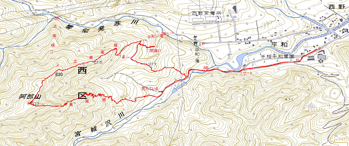 | 宮城ノ沢林道(東〜北東尾根)ルート |