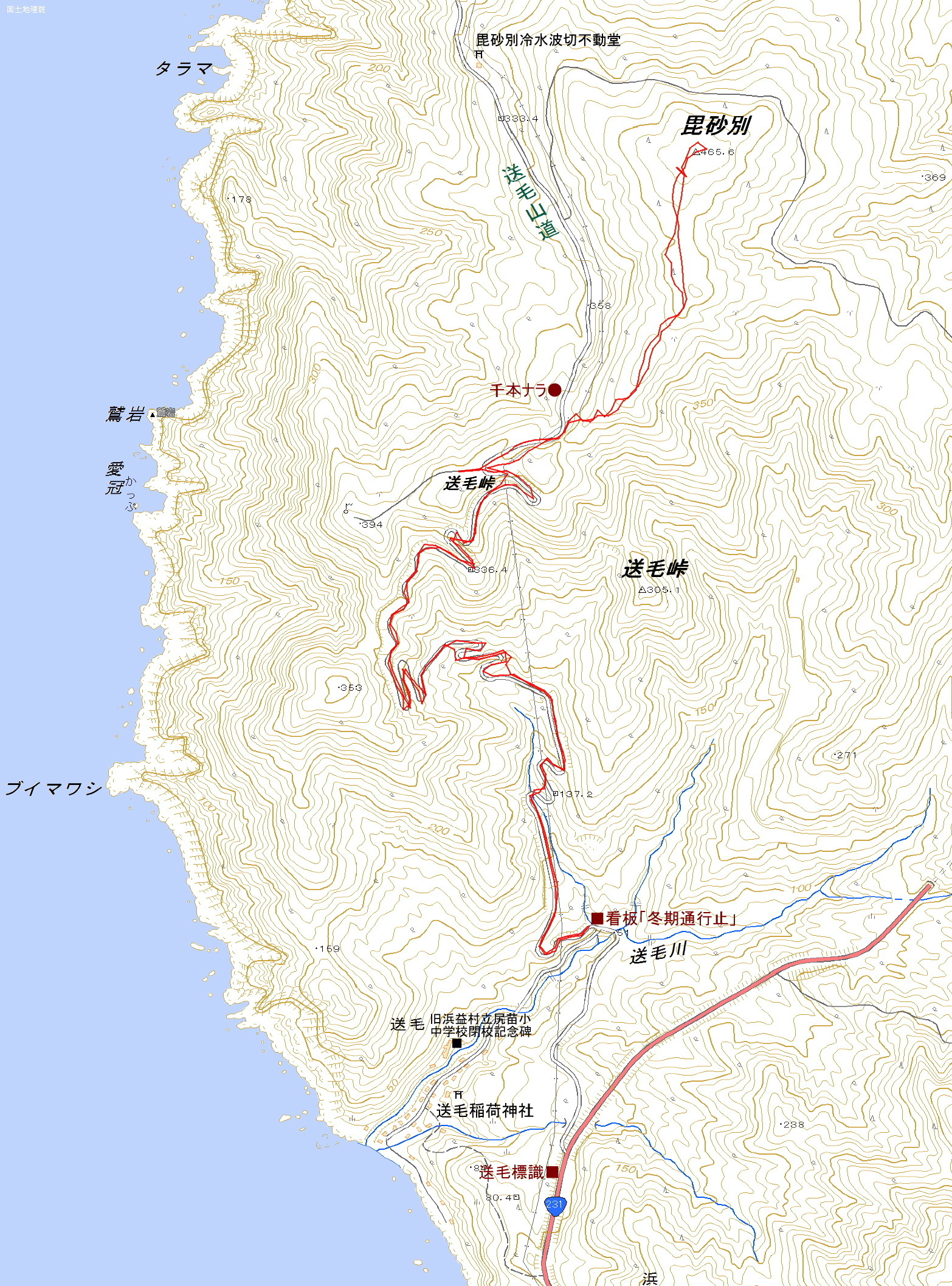 | 送毛山道(毘砂別)ルート |