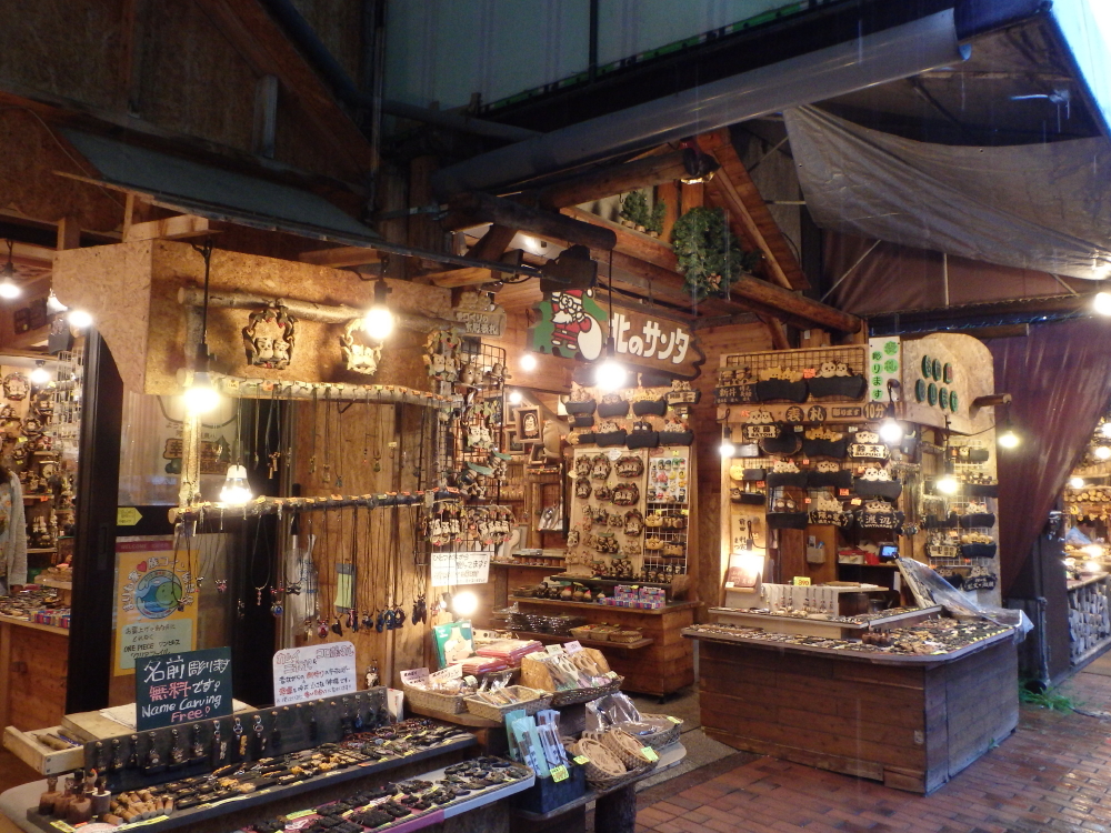 | 生活館やポンチチセがあり、チセ風の街並みになっている。生活館に入ると、お土産を売っていた。 |