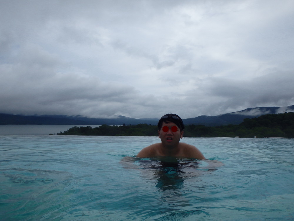 プールと阿寒湖が一体に見える。 |