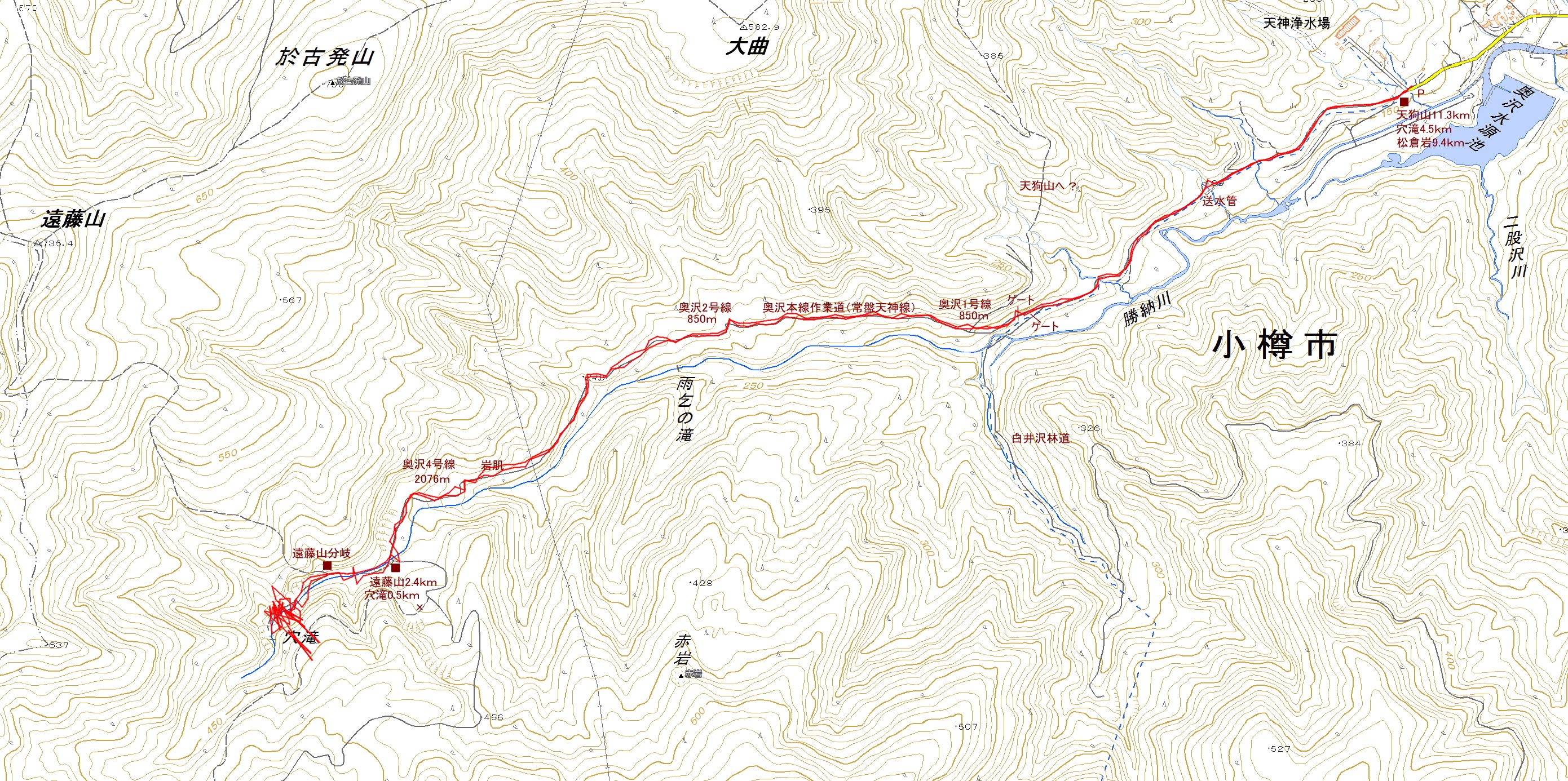 アクセス 小樽の奥沢十字路を山側へ何所までも真っ直ぐ行き、奥沢水源池を目指す。天神浄水場の門の傍に駐車スペースがある。駐車場所は天神・常盤線(奥沢本線作業道)の入口だ。 国土地理院地図 穴滝 - Google マップ ルート図(2006.12.16)大→┃ |
