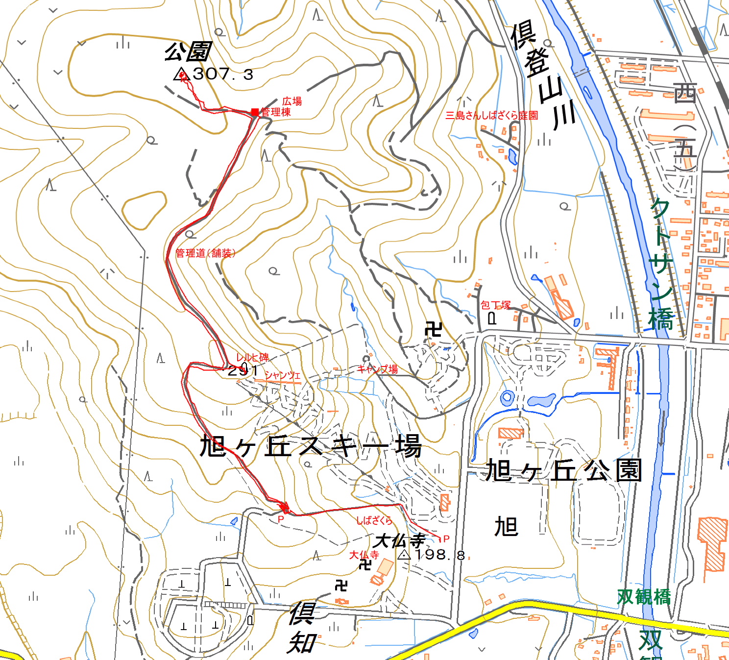アクセス 道道倶知安ニセコ(58号)線の双観橋か、メルヘン通の倶登山橋を渡り倶知安駅の裏山を目指す。駐車場やトイレは、わんぱく広場、スキー場(上、下)、温水プールにある。 国土地理院地図 Google マップ |