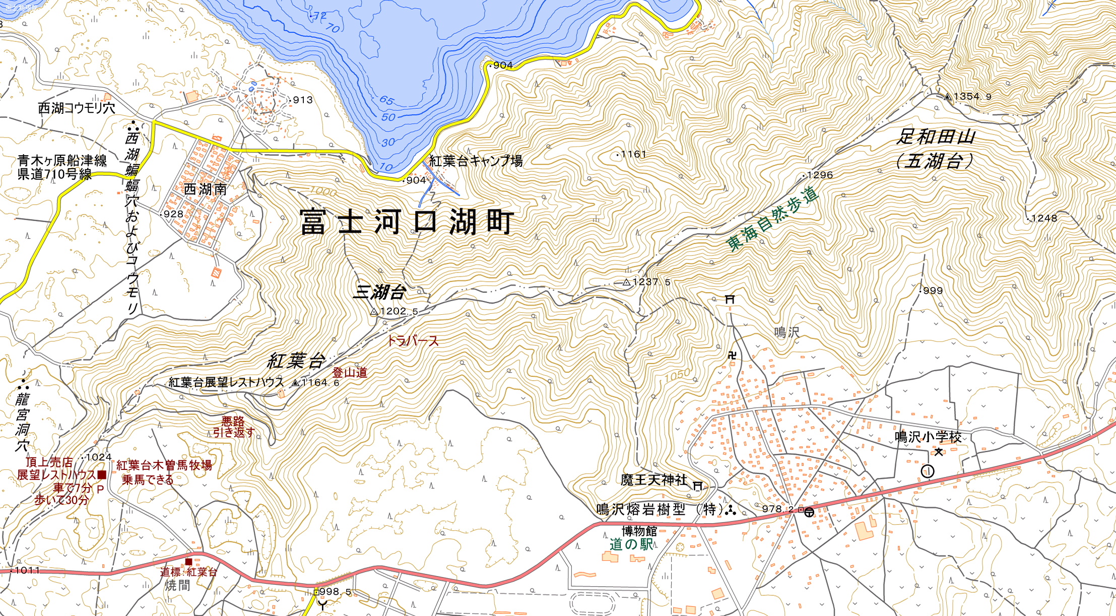 | 足和田山(五湖台1354.9m)三湖台(1202.5m)紅葉台(1164.6m) |