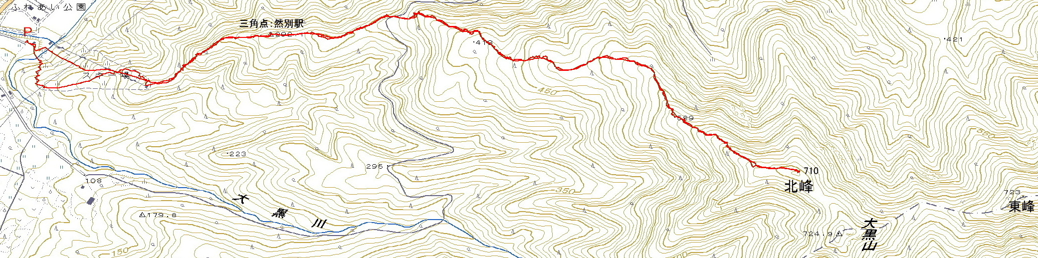 | 林道を横断(大×) | 頂白山が | 余市川 | 山頂が |