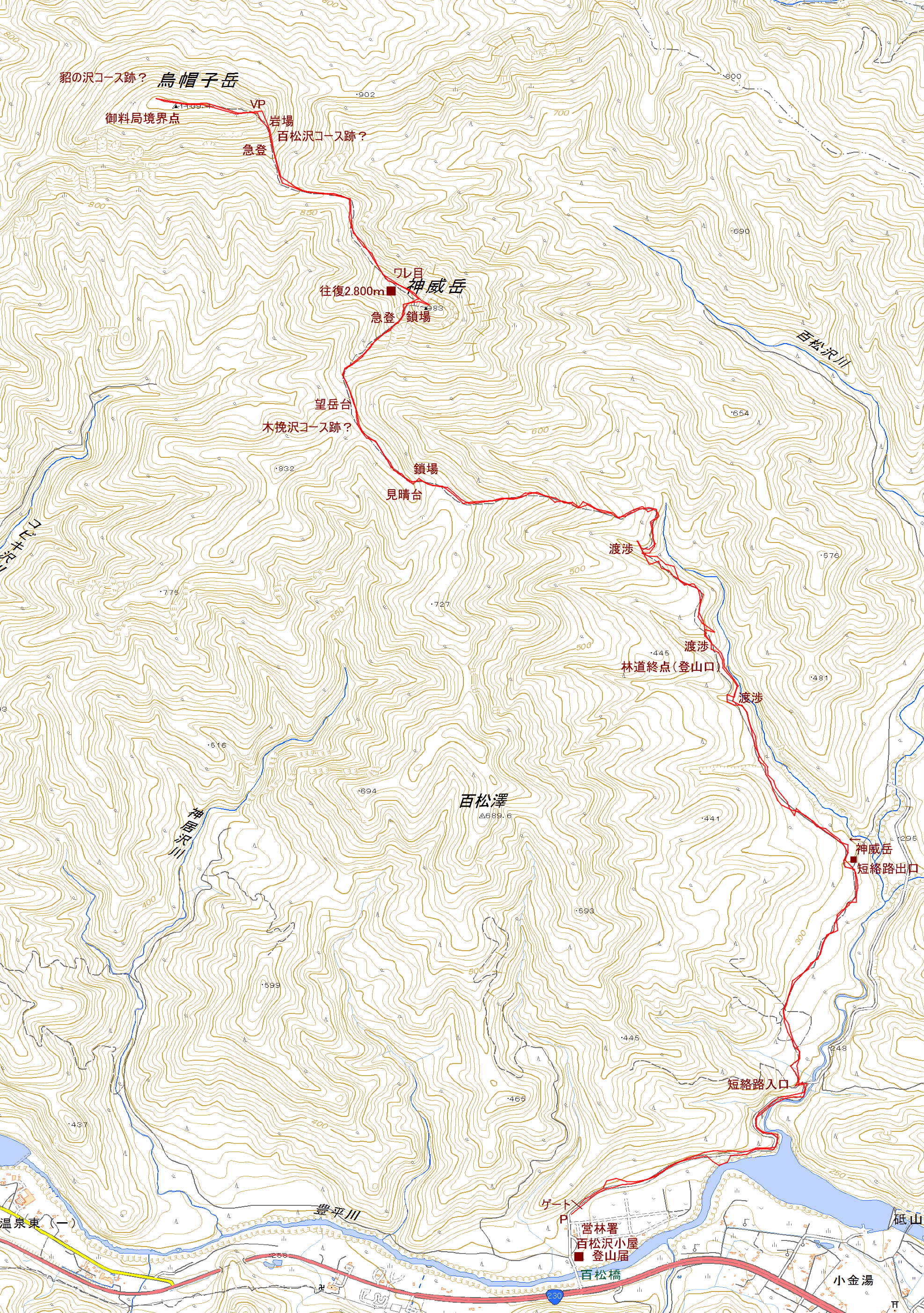 山行記録 2020(R2)年10月20日(火) 晴れ 往復18.101km 登り4:07 下り2:56 6:46駐車場→6:51百松橋→6:55百松沢小屋→6:59ゲート→7:12橋→7:13橋→7:16短絡路入口(神威岳看板)→7:20矢印→7:27熊注意→7:35短絡路出口(林道へ、百松沢分岐、神威岳看板)→7:52渡渉→7:56林道終点(登山口)→7:58渡渉→8:16渡渉→9:03見晴台→9:20巌望台→9:48鎖場→9:51烏帽子岳分岐→10:44岩場→9:54神威岳10:03→10:05烏帽子岳分岐→10:06注意看板往復2,800m(ワレ目)→10:09鎖場→11:02烏帽子岳11:06→11:52神威岳分岐(下山看板)→12:18巌望台→12:21見晴台→13:13短絡路13:30→13:50ゲート→14:02駐車場 2006(H18)年6月3日(土) 晴れ 往復15.752km 登り3:37 下り3:23 5:37ゲート→5:51短絡路6:06→6:25登山口→7:33巌望台→8:04神威分岐→9:14烏帽子岳9:35→10:36神威分岐→10:40神威岳10:50→11:06巌望台→12:33短絡路12:49→13:08ゲート |