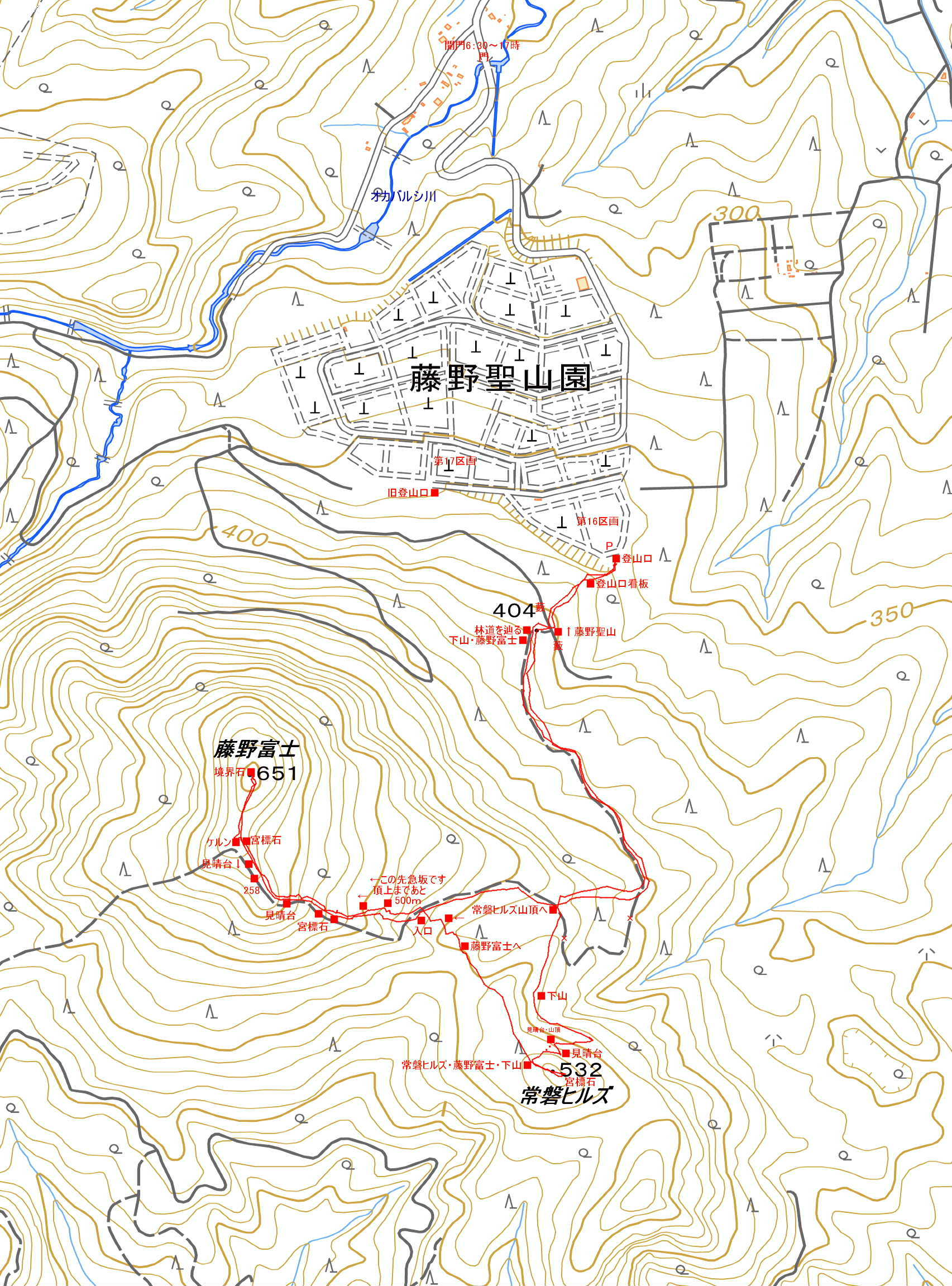 | 見晴台のベンチ | 藤野富士 | 分岐 | 常磐ヒルズ |