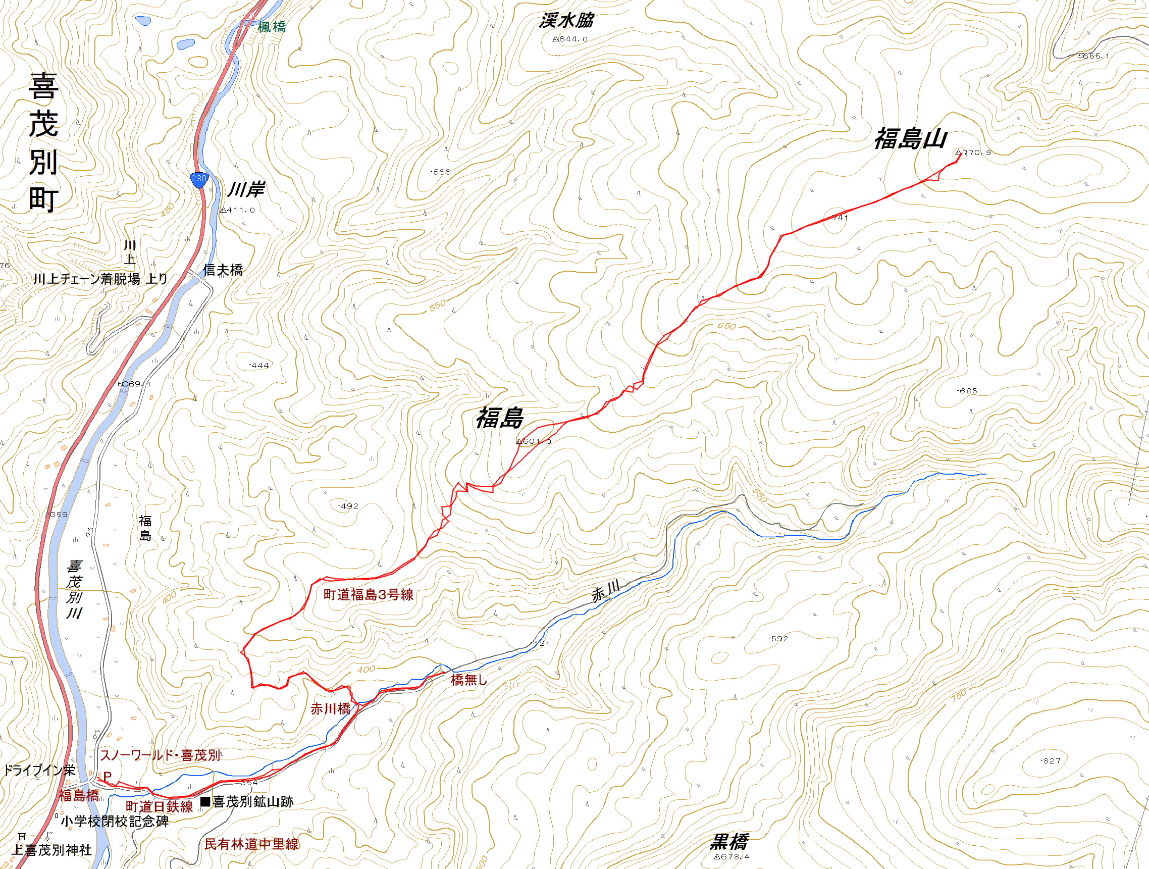 アクセス 中山峠から喜茂別に向って国道230号線を下り、喜茂別町栄の「ドライブイン栄」から左折して喜茂別川に架かる「福島橋」を渡ると、直ぐに左カーブになり、駐車スペースがある。取り付きは「町道日鉄線」で、福島橋から真っ直ぐ延長線上にある。現在は、更に奥に事務所が出来ている。 国土地理院地図 Google マップ ルート地図(2007.3.10)クリック大→┃ |