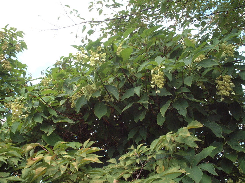 | 愛棒が家庭医で順番を待っている間に時間があったので散歩をする。軽川の右岸沿いを北上して行くと、ノリウツギが咲いていた。振り返ると銭函天狗山が見えていた。下手稲橋を折り返し、左岸沿いを辿って行くと、手稲山と星置山が見えて来る。この山並みを観音様と、毎日拝んでいる人がいるようだ。よく見ると、手稲山は冠、西峰は鼻、星置山はお腹に見えるという。 |