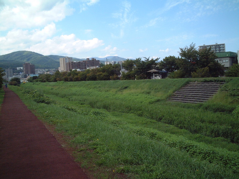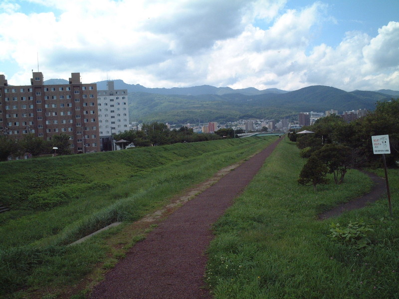 前田大橋から手稲山を望む。前田大橋は、木の橋からコンクリートになっている。 |