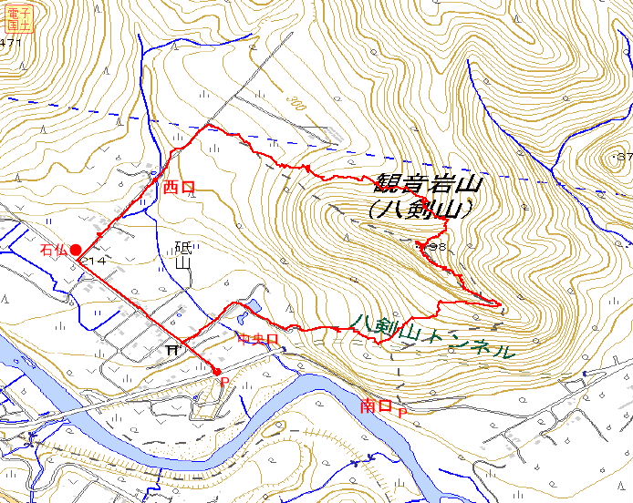 | 八剣山 | ワイナリ | 地蔵さん右折 | 登山口 |