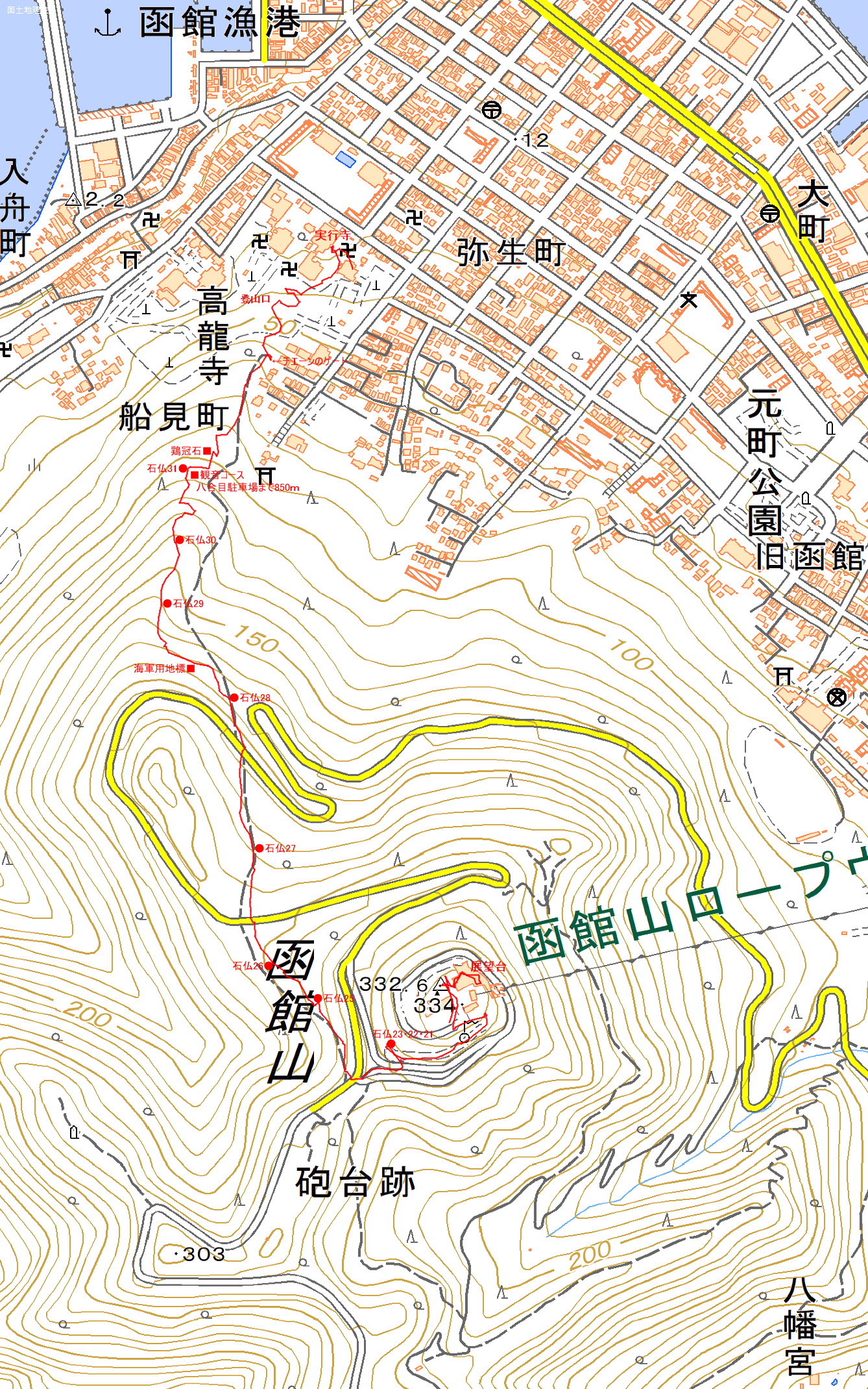ポイント 函館山は大雪山と同じように、13ピークを総称して呼ばれている。山頂標識が無い山や閉鎖されている山もある。案内図や道標の呼称が統一されていないので分かり難い。 ピークが多いのでその分、登山ルートも多く、家族の好みや持ち時間に合わせて楽しめる。低山なのに花が豊富で、要塞遺構など歴史の実感も味わえる。 ハイキングコースマップ(ロープウェイHP) |