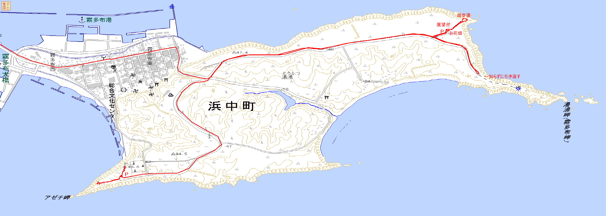 | 霧多布展望台<2012.8.28> Google Map 遊歩道地図(2012.8.28)大→| |