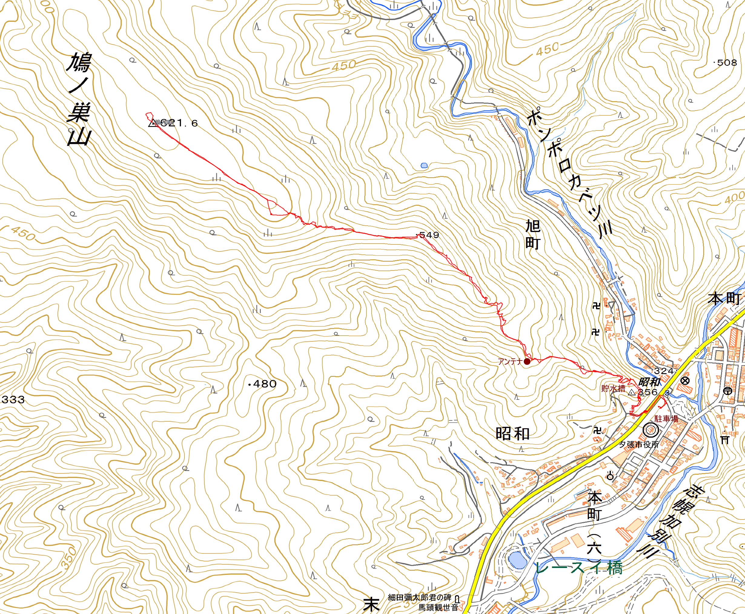 | 鳩ノ巣山(621.6m)昭和(三角点:356.4m) |