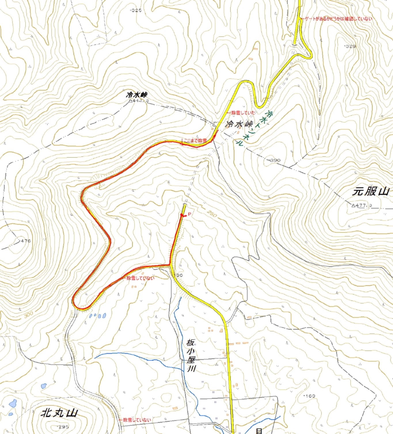 ポイント 冷水トンネル開通で、除雪されなくなった道路を辿る。 |
