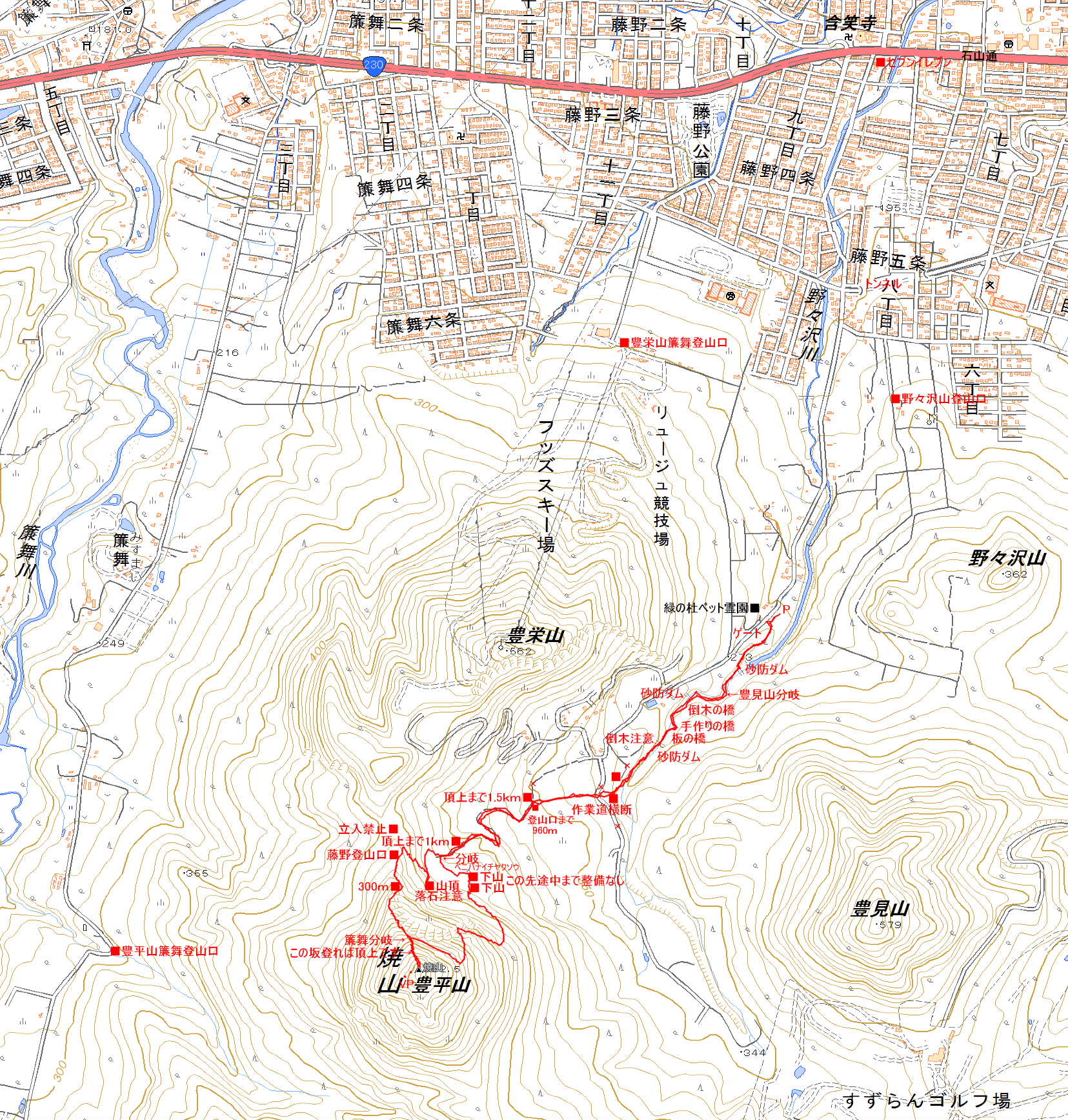 | タヌキの糞 | 簾舞分岐 | 硬石山が | 採石跡 |