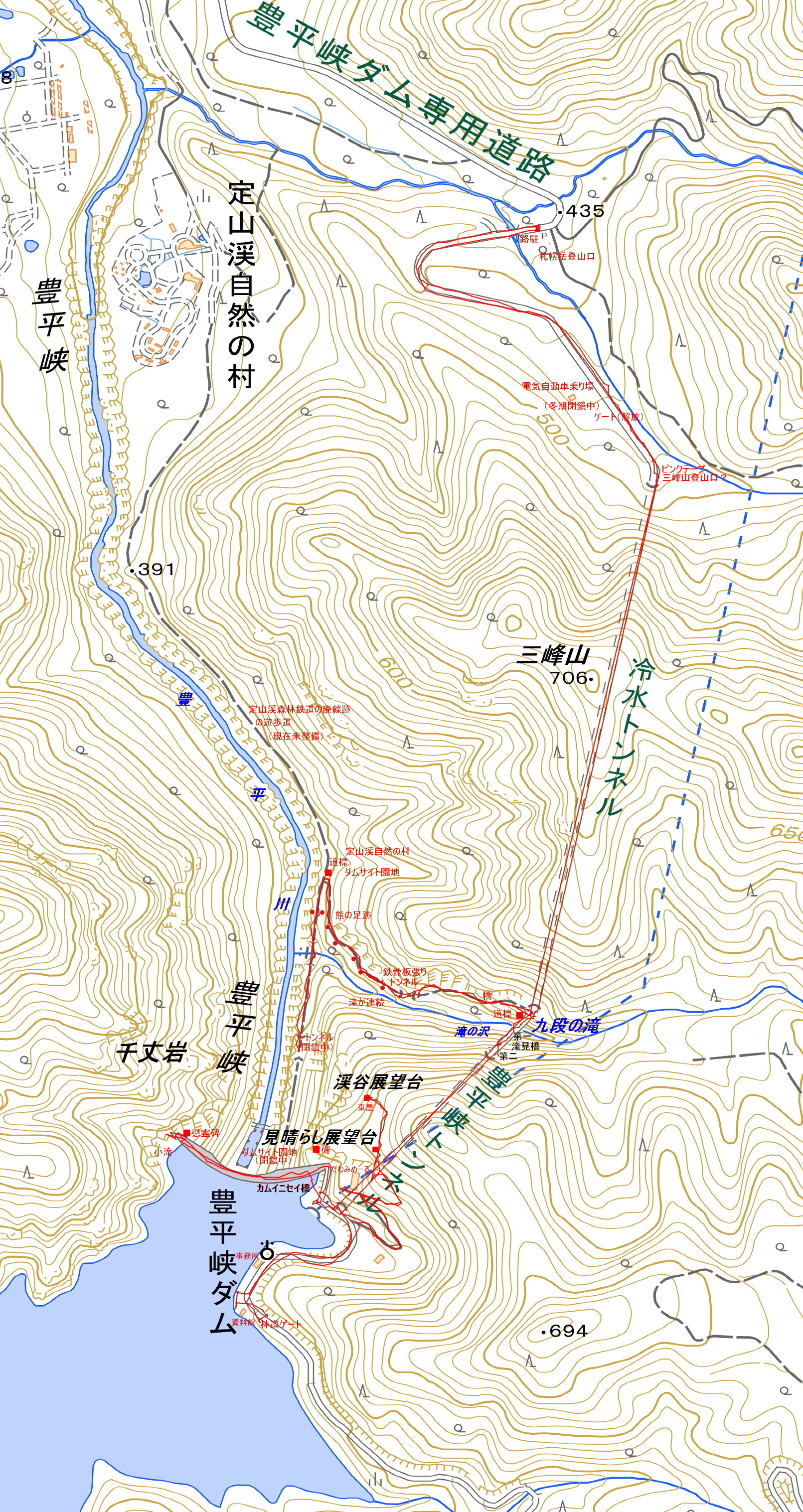 | 熊の足跡3 | 上の遊歩道へ | 滝の沢の下の滝 | トンネルとダム |