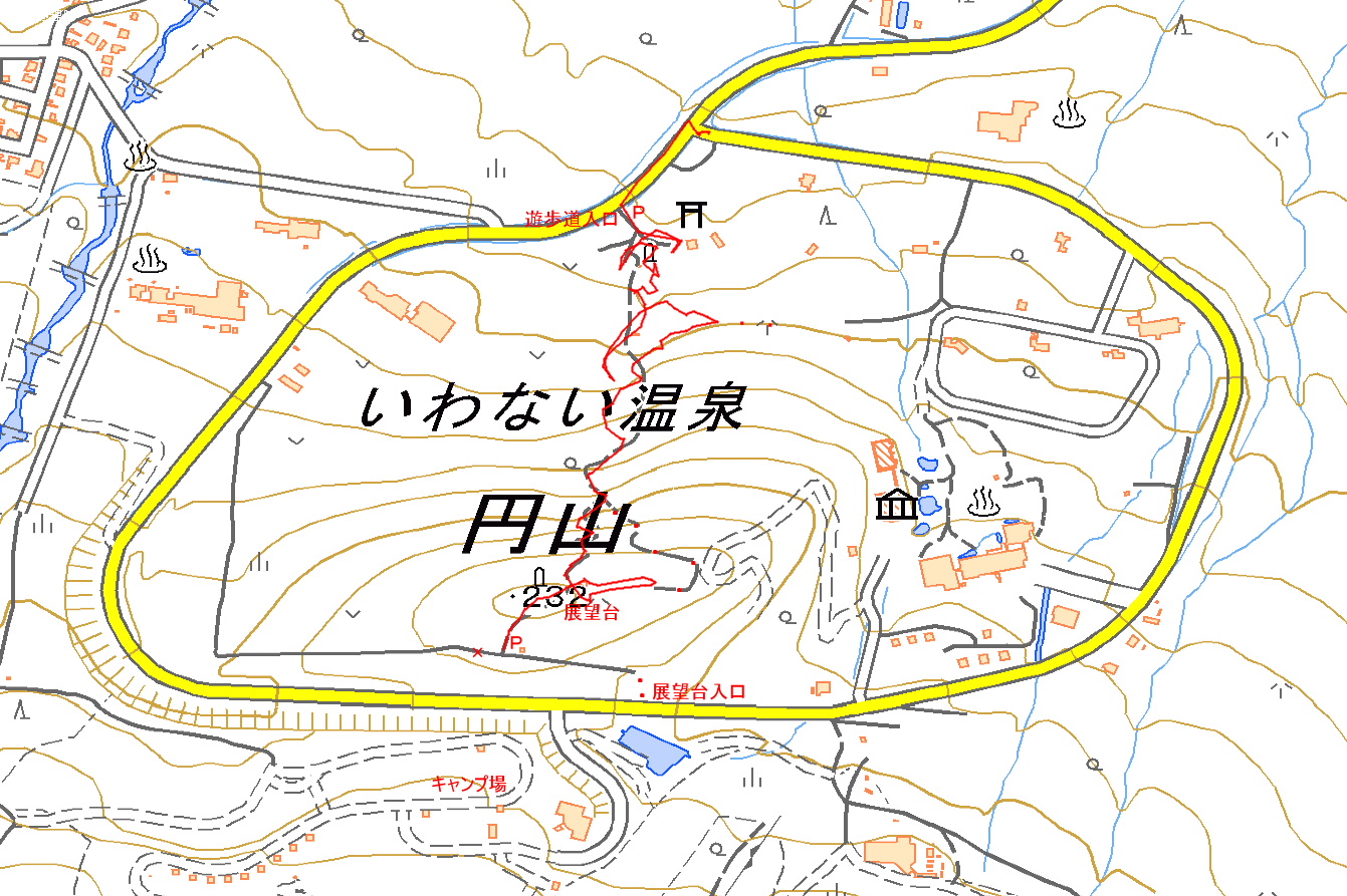 アクセス 展望台の入口は岩内岳登山口近くのキャンプ場「マリンビュー」の前にあり、遊歩道の入口は下の分岐付近にある。 国土地理院地図 Google Map 遊歩道地図(2016.8.24)大→| |