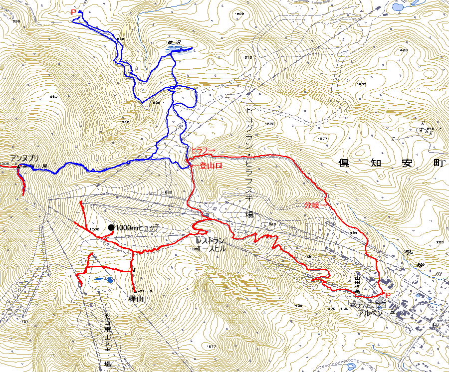アクセス 国道5号線から道道631号線に入り、ヒラフ温泉の山田温泉を目指すが、山田温泉は廃業したようだった。仕方が無く下って行き、ホテルニセコアルペン前にある無料駐車場に車を停める。 国土地理院地図 Google Map 登山道地図クリック大→| |