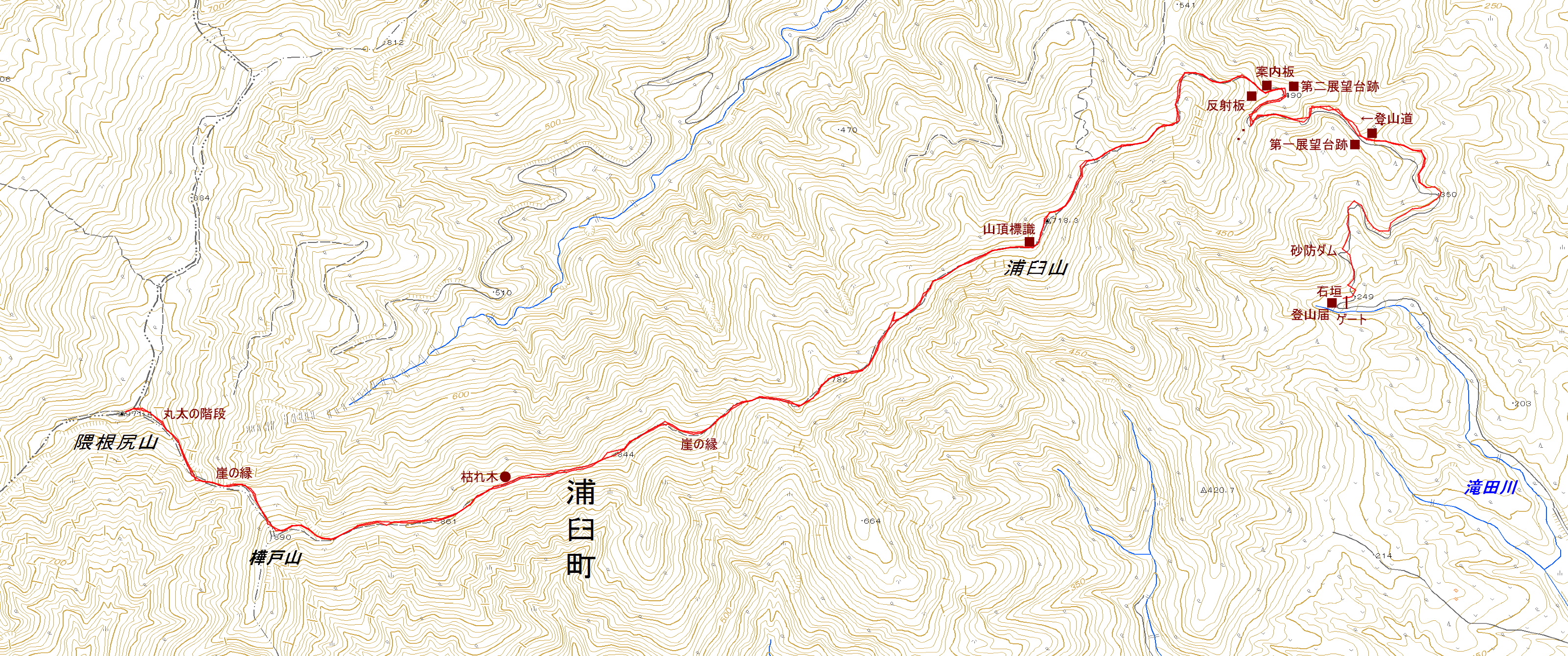 アクセス 札幌から国道275号線を走り浦臼町を目指す。浦臼町に入り、JR浦臼駅を過ぎると左に「樺戸連峰登山道入口」の看板が建っている。ここを左折して、JRの踏切を渡って滝田川沿いに延びる集治監沢の舗装道路を山の方へ辿る。途中で舗装が切れるが、道標に従い辿ると大きな砂防ダムに突き当たる。登山口の上にゲートがあり、そこにも数台置けるスペースはある。 国土地理院地図 Google Map |