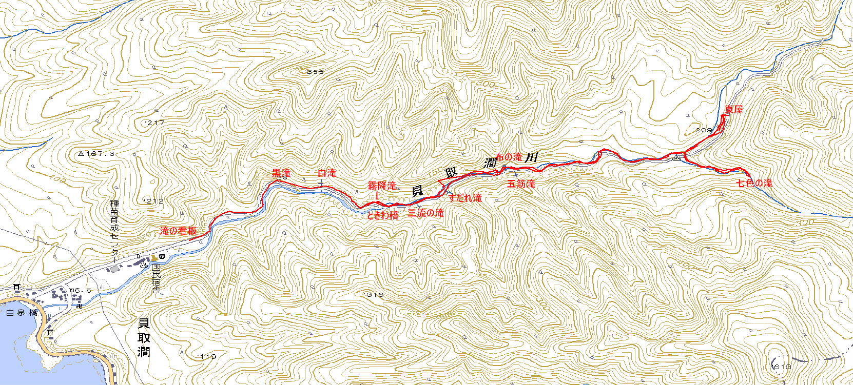 | 貝取澗渓谷(30〜230m) |