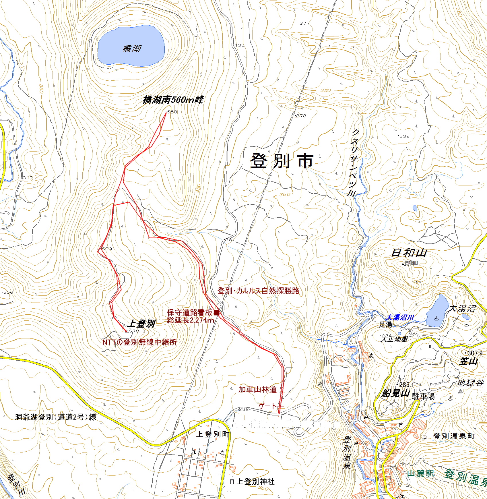| 上登別(三角点名:578.7m)・橘湖南560m峰 |