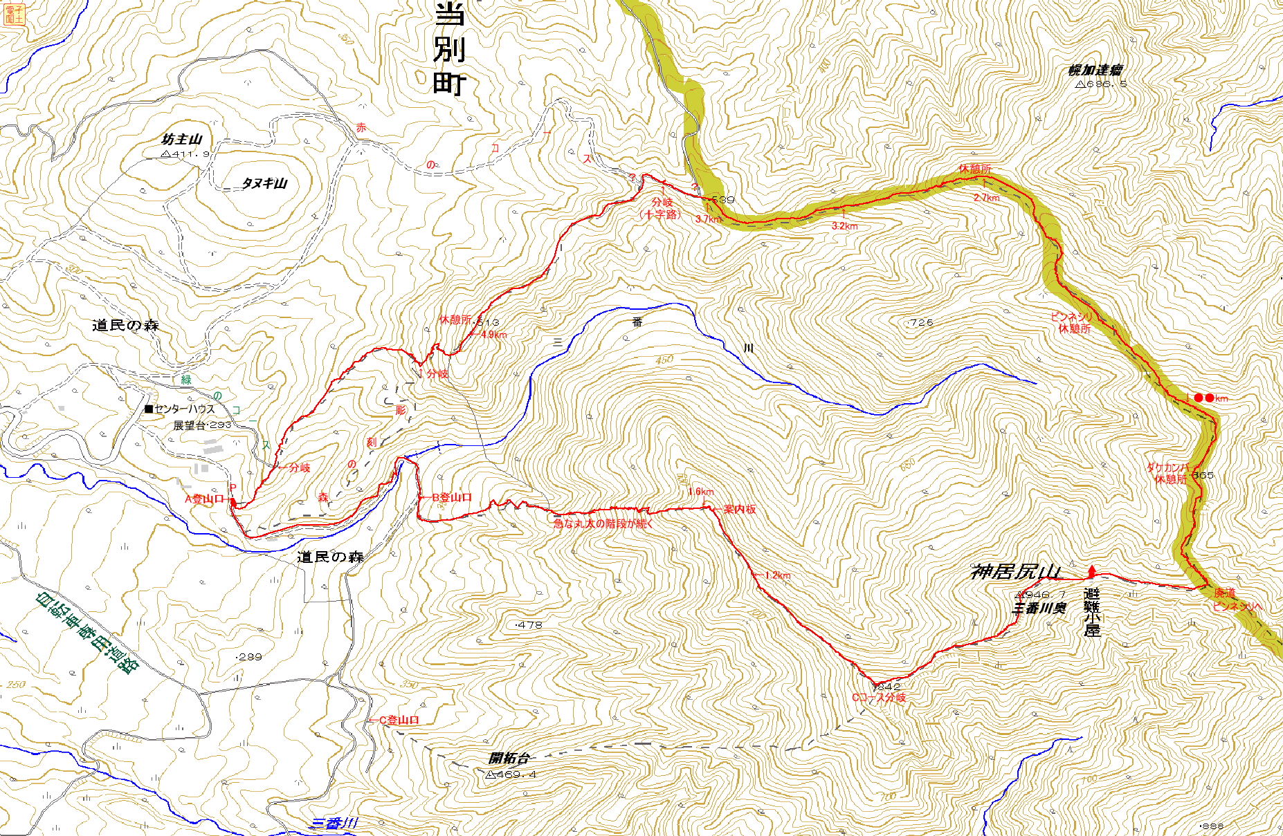 ポイント 道民の森なので立派な施設がある。登山コースはA・B・Cの3コースあり、組み合わせることで縦走気分が味わえる(ピンネシリまでの縦走路は閉鎖中)。 Aコースからの登りは距離が長いので時間がかかるが、丸太の階段が少ないので登りは楽だ。山頂には三等三角点:三番川奥、Cコース上には四等三角点:開拓台がある。 |