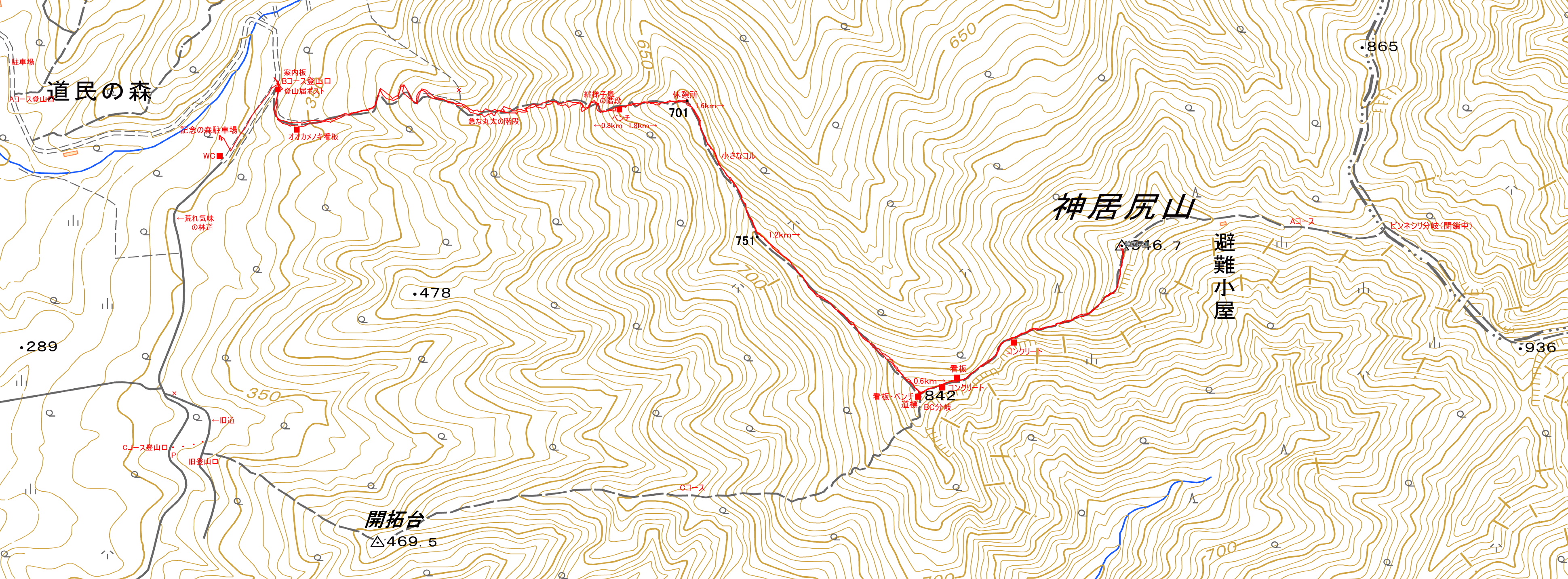 | 後1.8km | 休憩所 | 後1.6km | 山頂 |