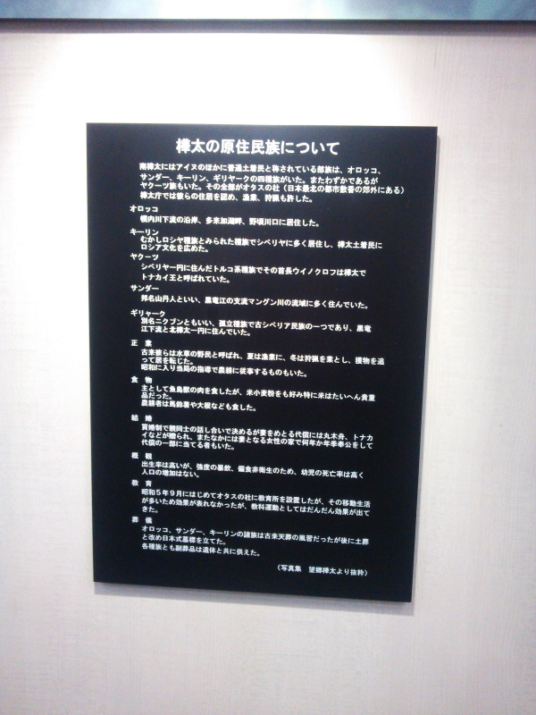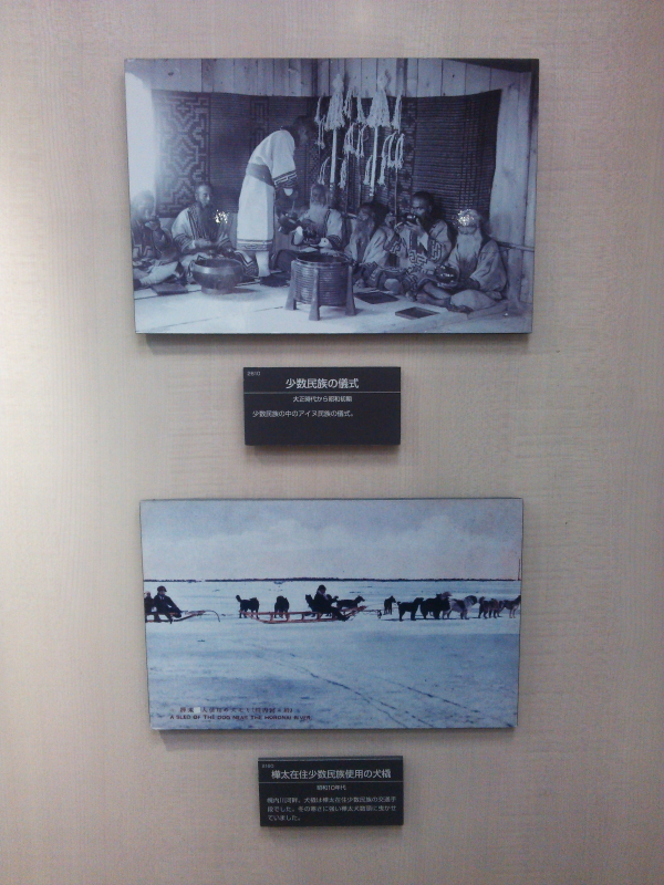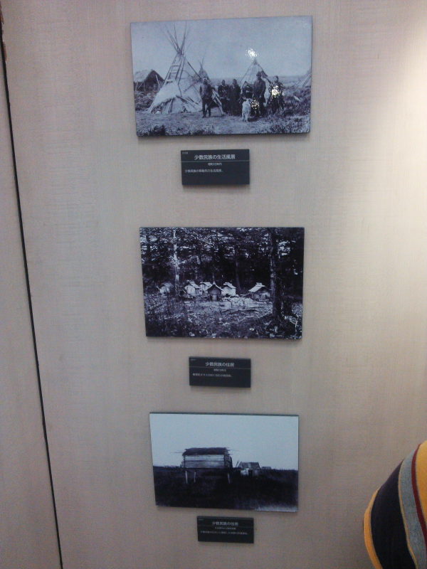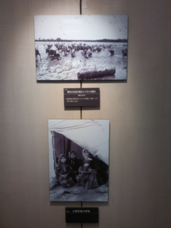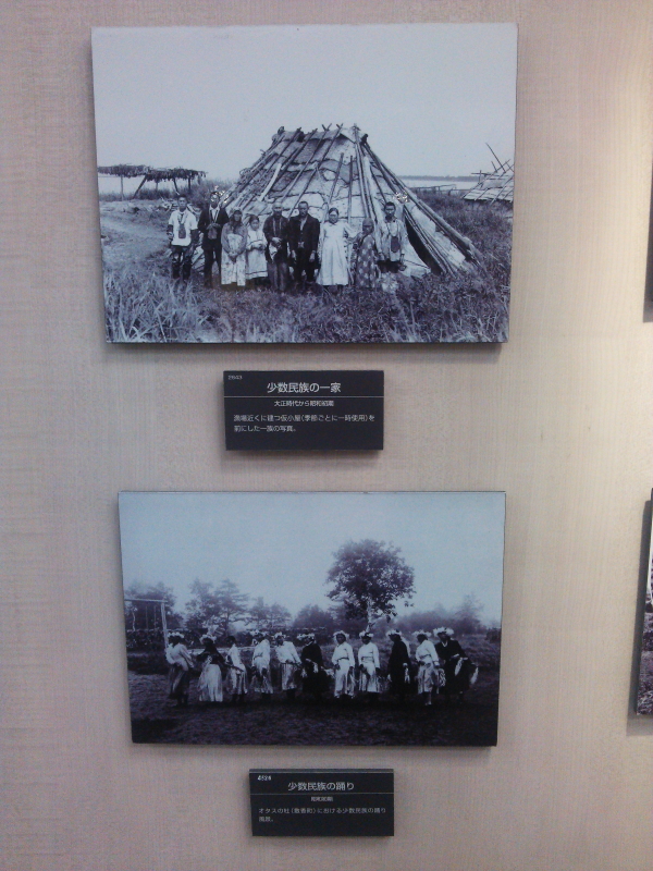 | 民族衣装も展示されていた。少数民族の儀式や昭和10年台のギリヤーク人。仮小屋と踊り、正装とオロッコ一家。 |